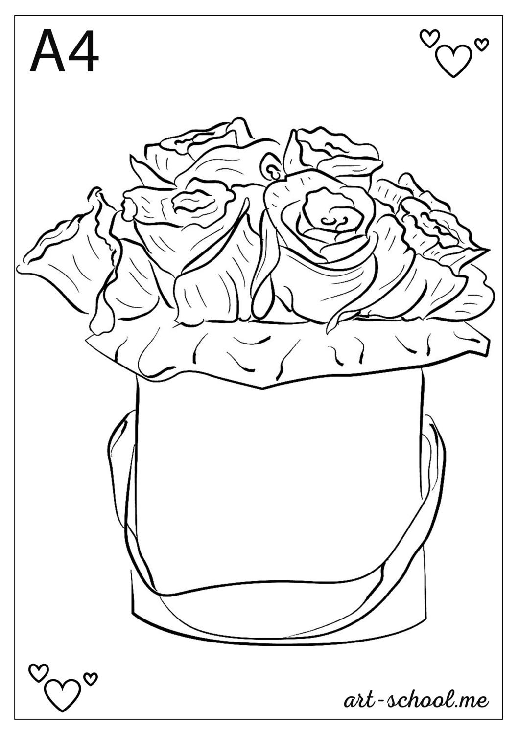 Kwiaty na Dzień Kobiet! Kolorowanka dla mamy - bukiet! Laurka dla mamy - kolorowanka! Kolorowanka bukiet róż w torebce!