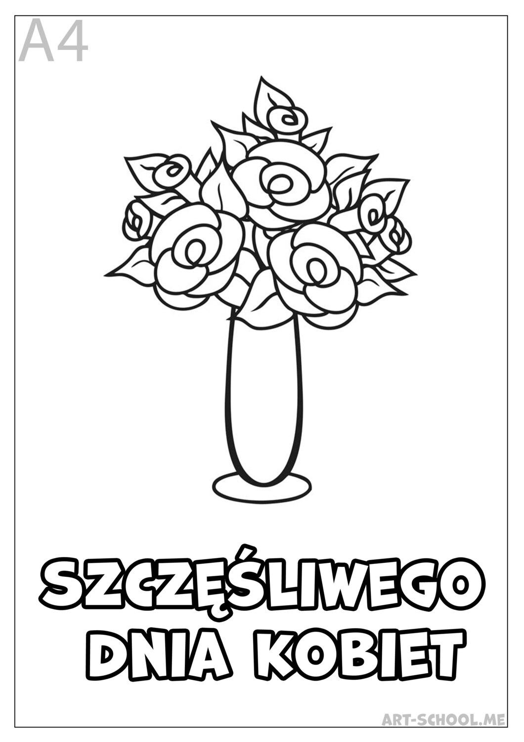 Róże w wazonie! Laurka na Dzień Kobiet! Kwiaty do druku pdf! Darmowa kolorowanka Dzień Kobiet do druku!